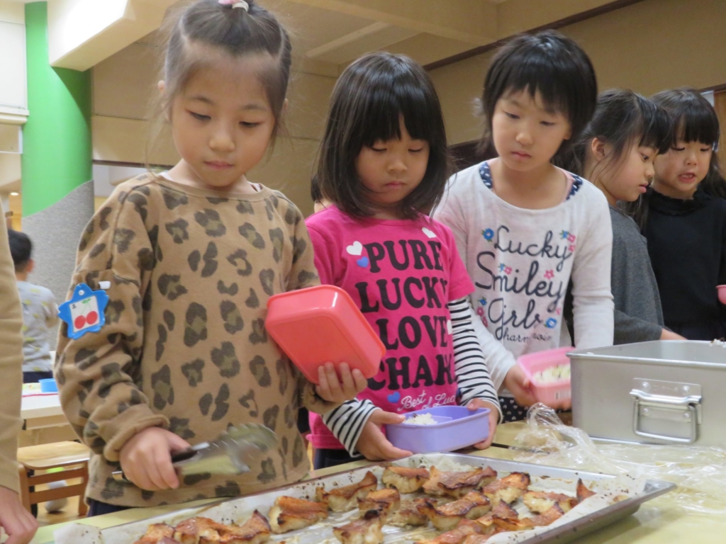 11月18日は、お家から空のお弁当箱を持って来て、いつもの給食をお弁当箱に詰めて自分のお弁当を作る空弁の日でした。いつもは先生に配膳してもらう給食が、今日は自分で作る特別な日!子どもたちは慎重に詰め出来上がりを楽しみ、おいしくいただきました... -