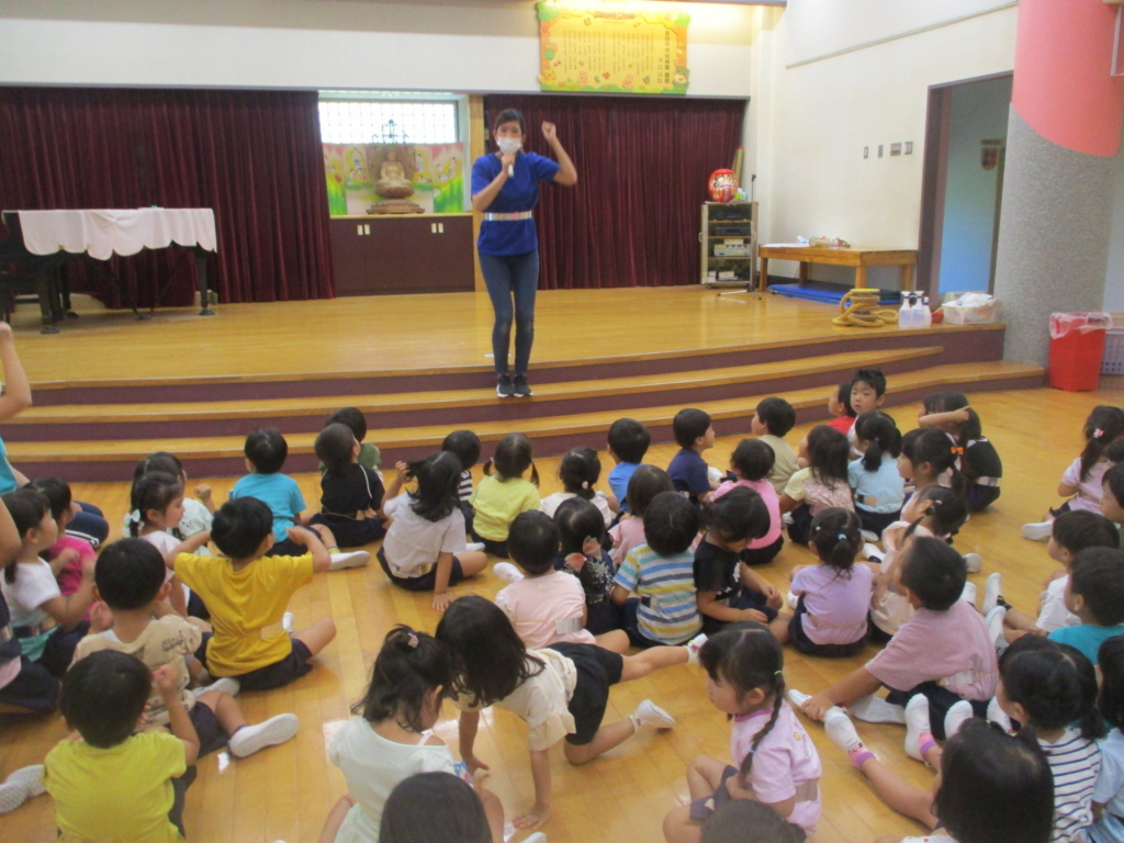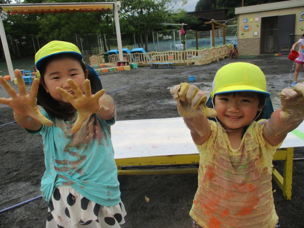 夏季保育の8月25日にお楽しみ会を行いました。夏のお楽しみといえば…やっぱり水遊び‼今回は前回楽しんだもの以外に新たにボディーペインティングも加わり、色の混ざりを楽しんだり、絵の具の付けっこを楽しんだりするなど笑顔が溢れた時間になりました。さ... -