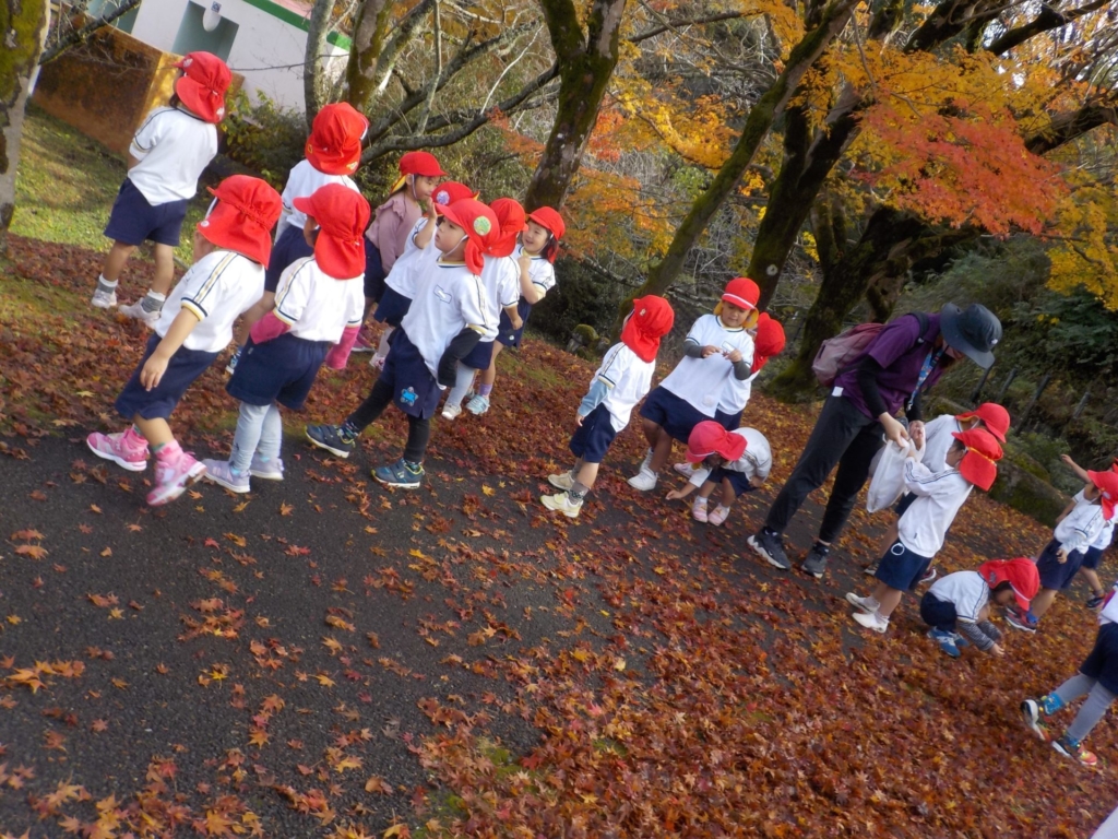 11月のわくわく保育は、落ち葉やどんぐりなどの秋の自然物を使い遊びました。1日目は中央公園に出掛け、赤いもみじや黄色のいちょうの葉っぱ、どんぐりを集めました。「きれいな葉っぱを探そうね」と、子どもたちは沢山落ちていた葉っぱの中から選んで拾っ... -