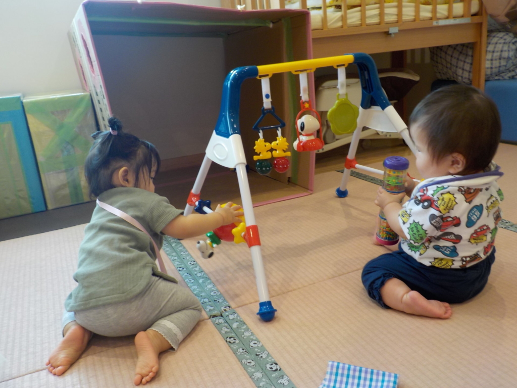 梅雨入りが発表され、天気予報は☂マークが並んでいます。そんな日は思い切り、保育室やホールで遊んでいます。園生活に慣れてきて、安心して過ごせるようになってきました。ハイハイや伝い歩きをし、活動範囲を広げています。「これは何?」と手に取って... -