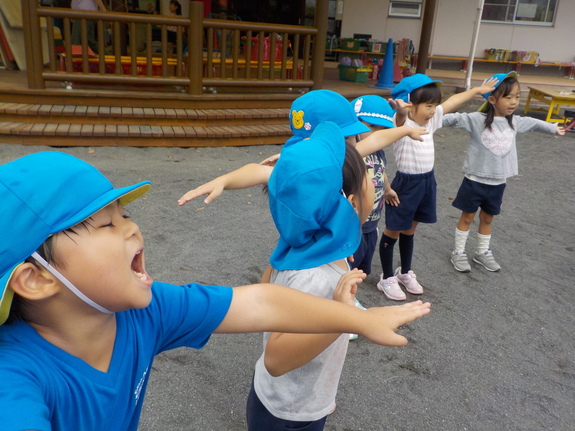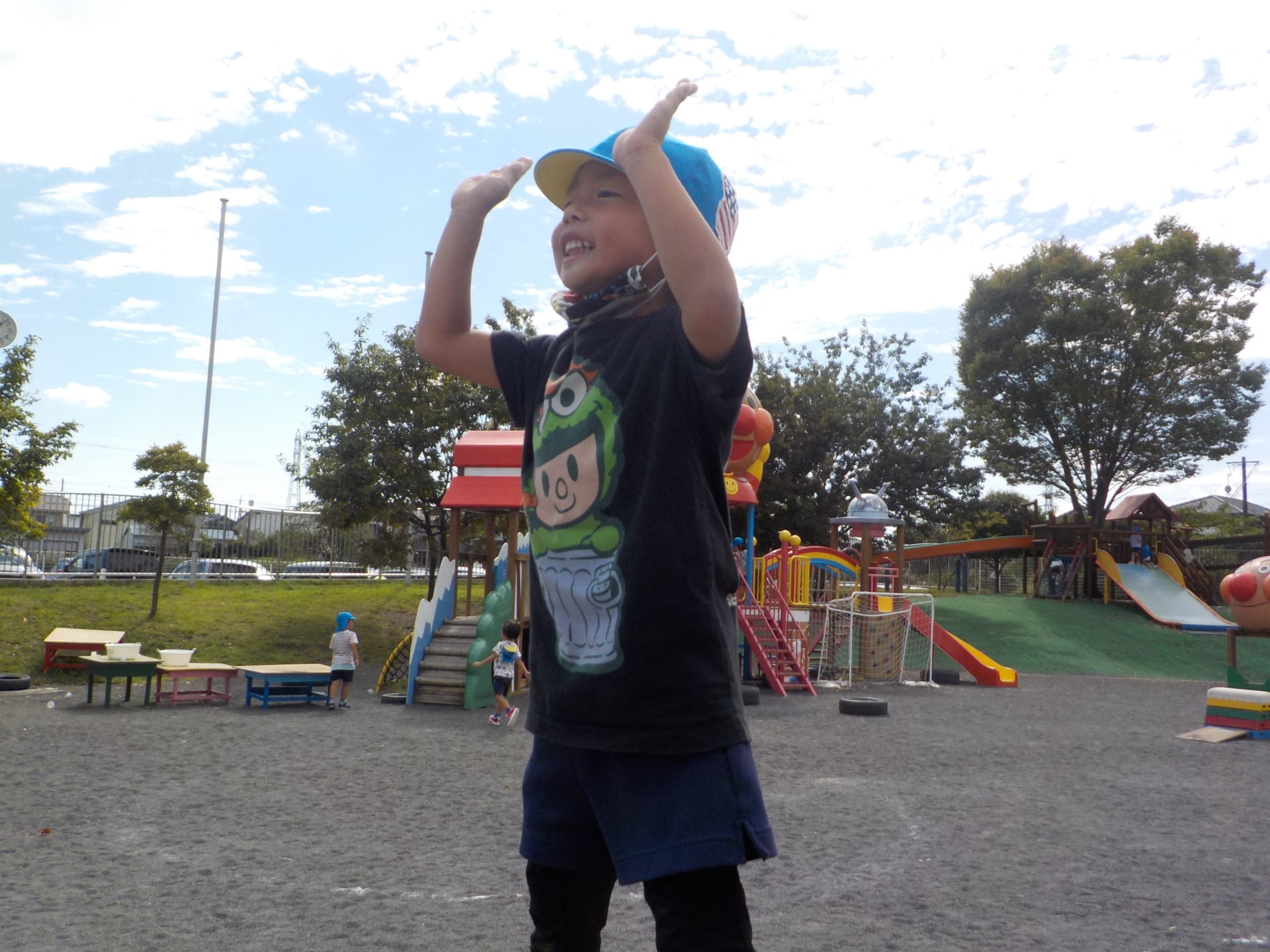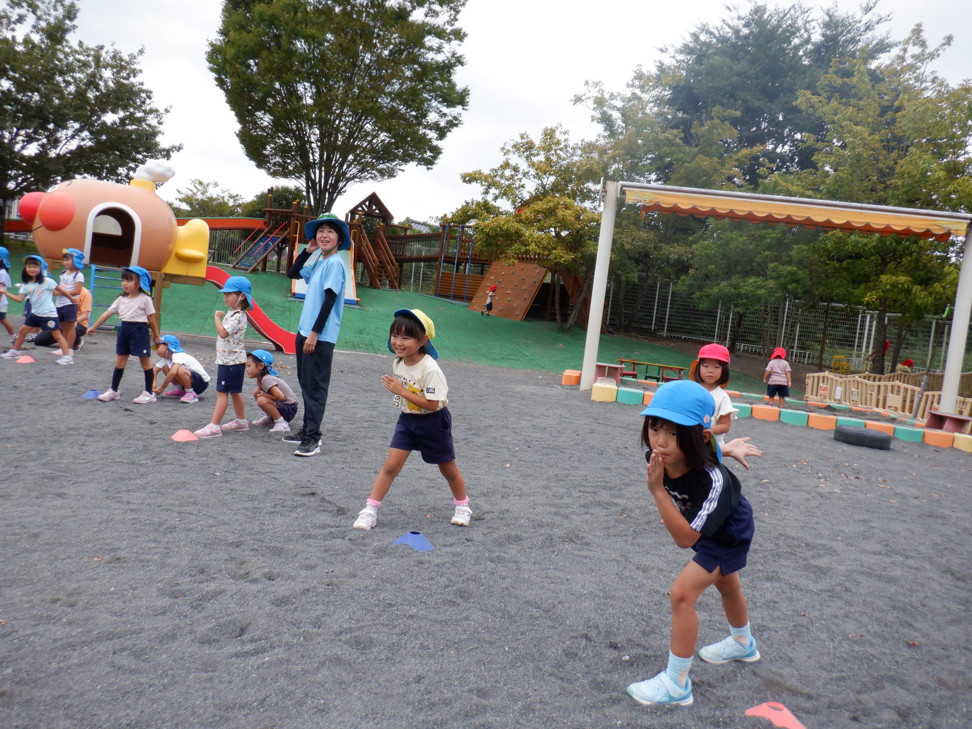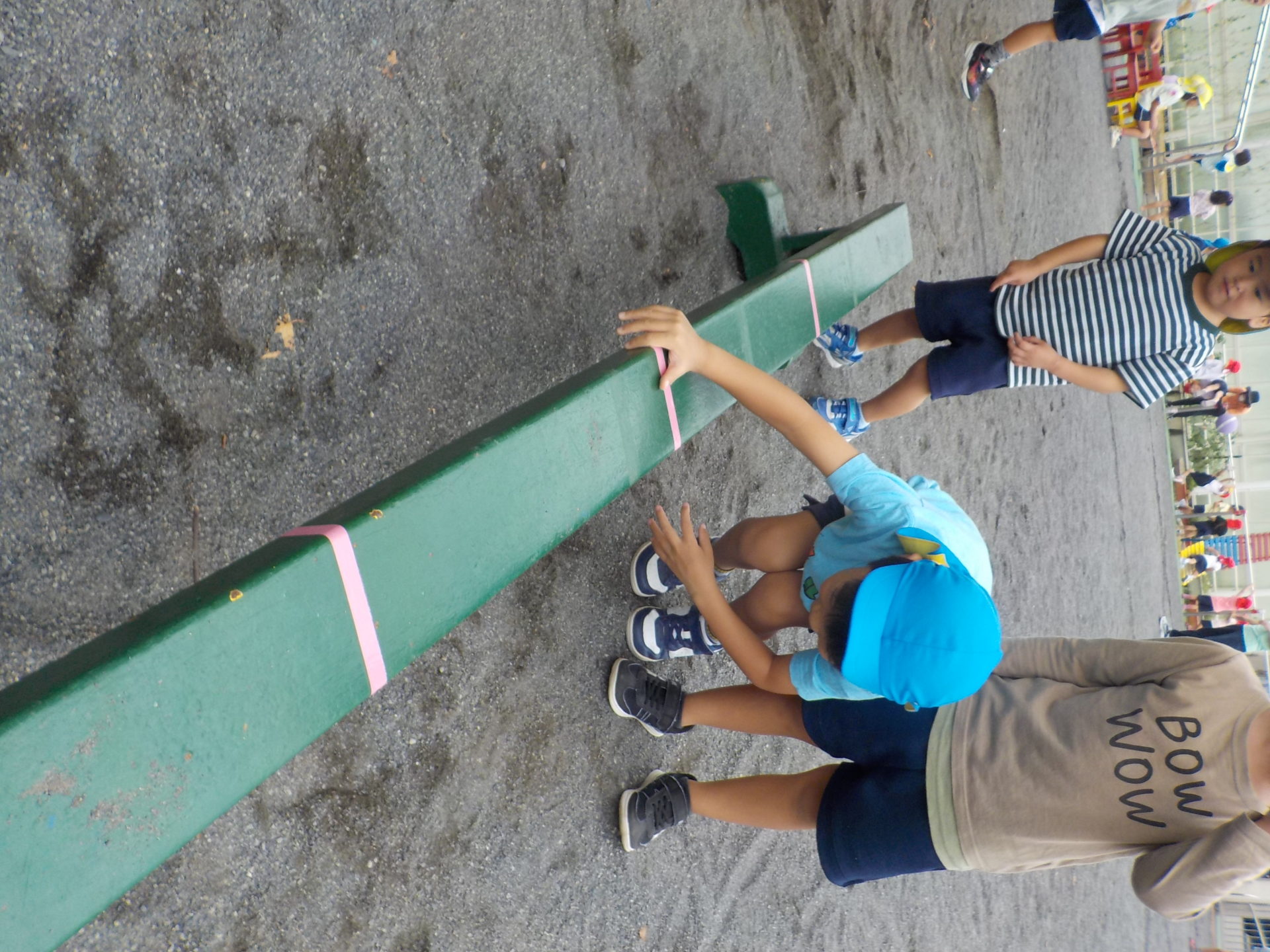 9月に入り、園庭には山登り、平均台、鉄棒、跳び箱が設定されました。昨年運動会を経験した青組の子どもたちは、設定されている障害物にどんどんチャレンジしていきます。初めは「苦手~」と言っていた子も、何度も挑戦していくうちに「できた!!」と目を輝かせます。かけっこでは”よーいのポーズ”をかっこよく決めて元気いっぱいに走り出します。運動会まであと少し、みんなで一緒にがんばろうね!!