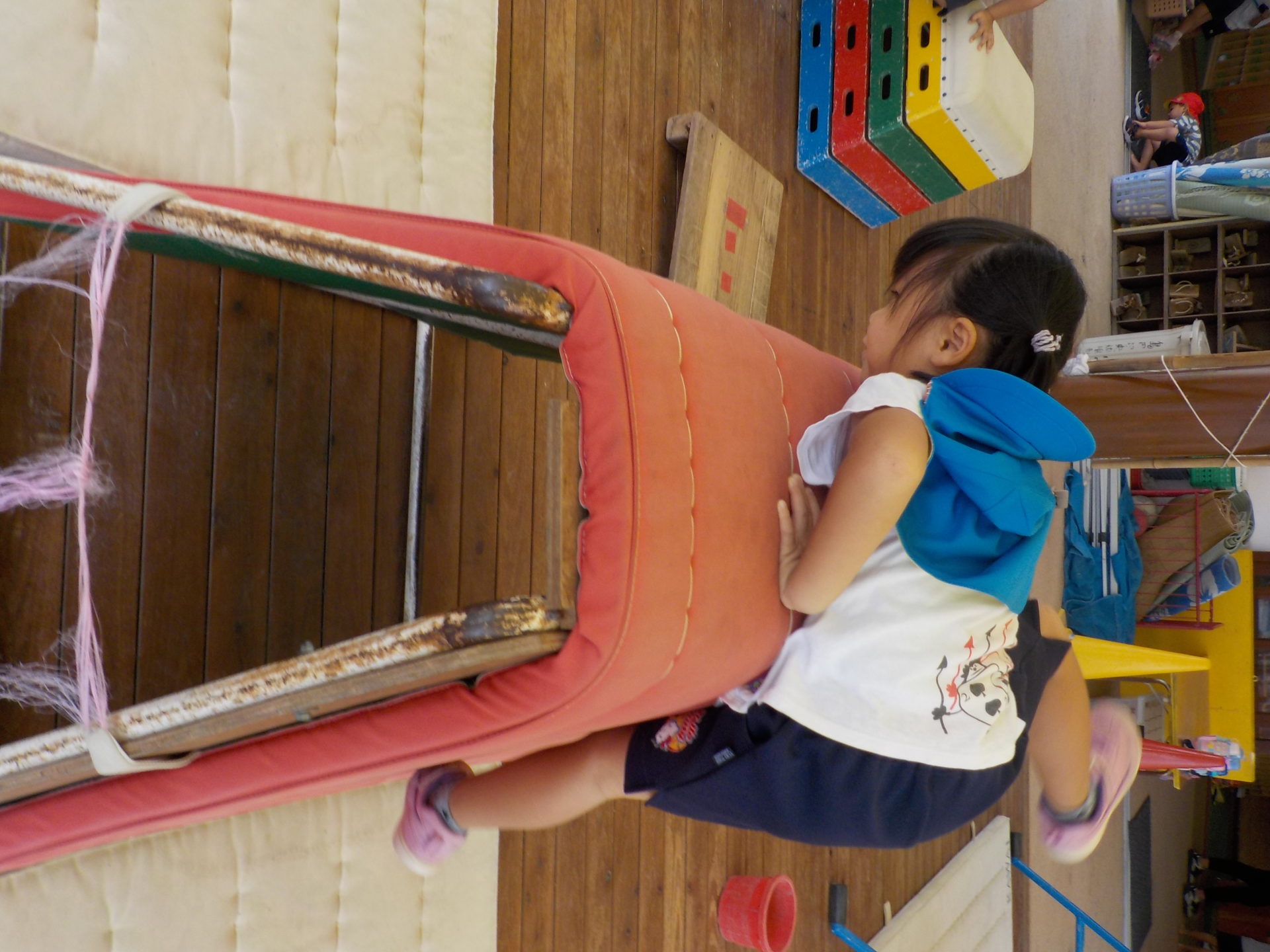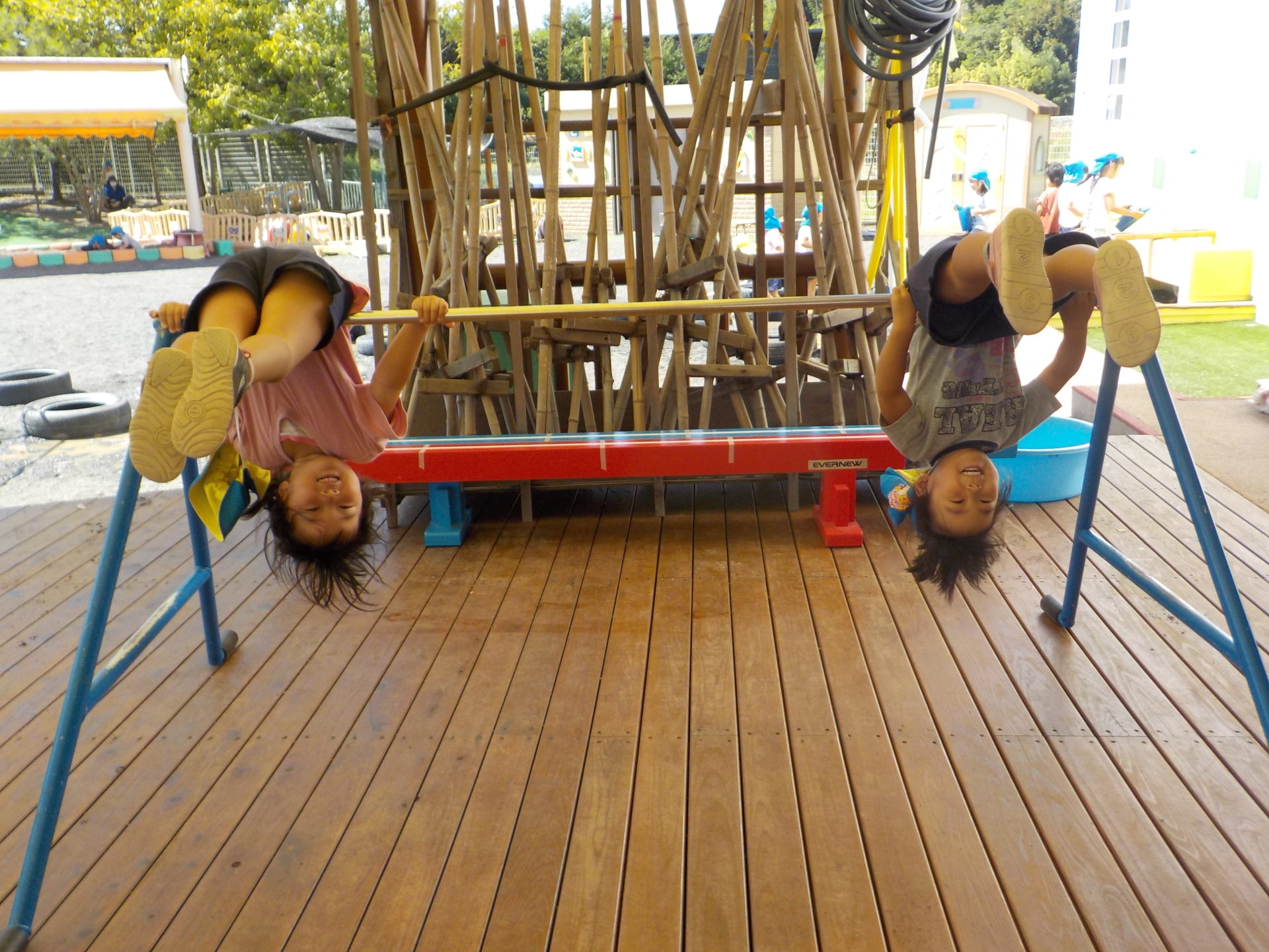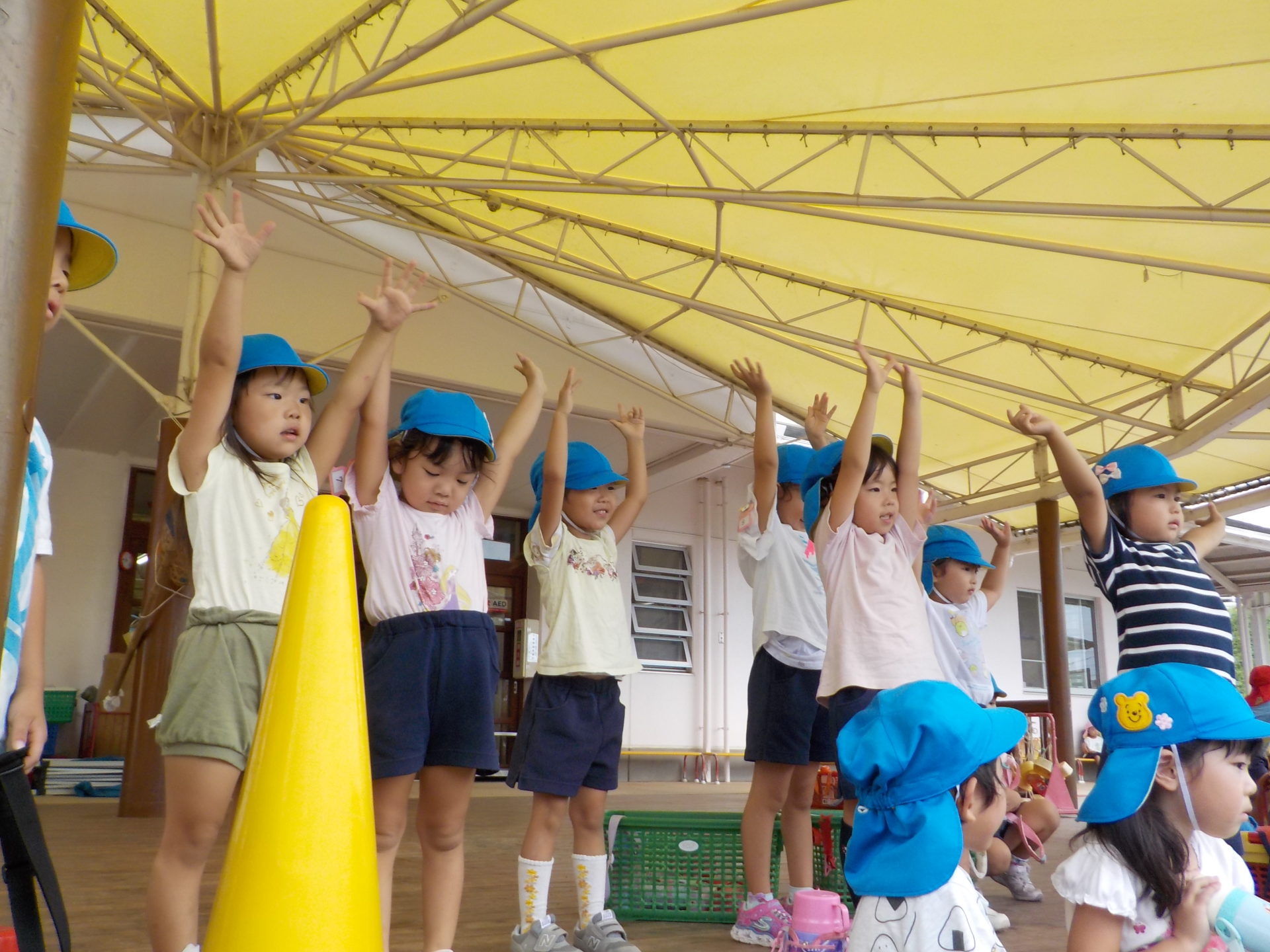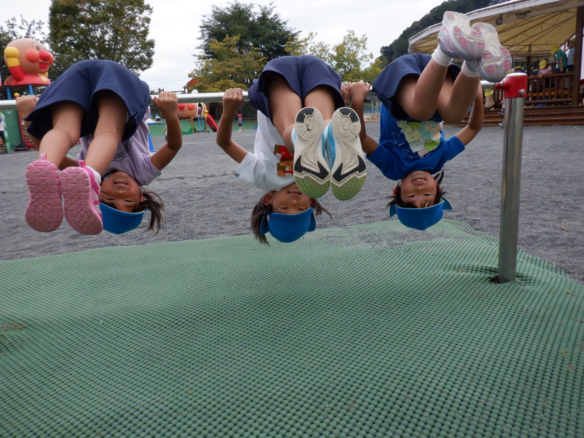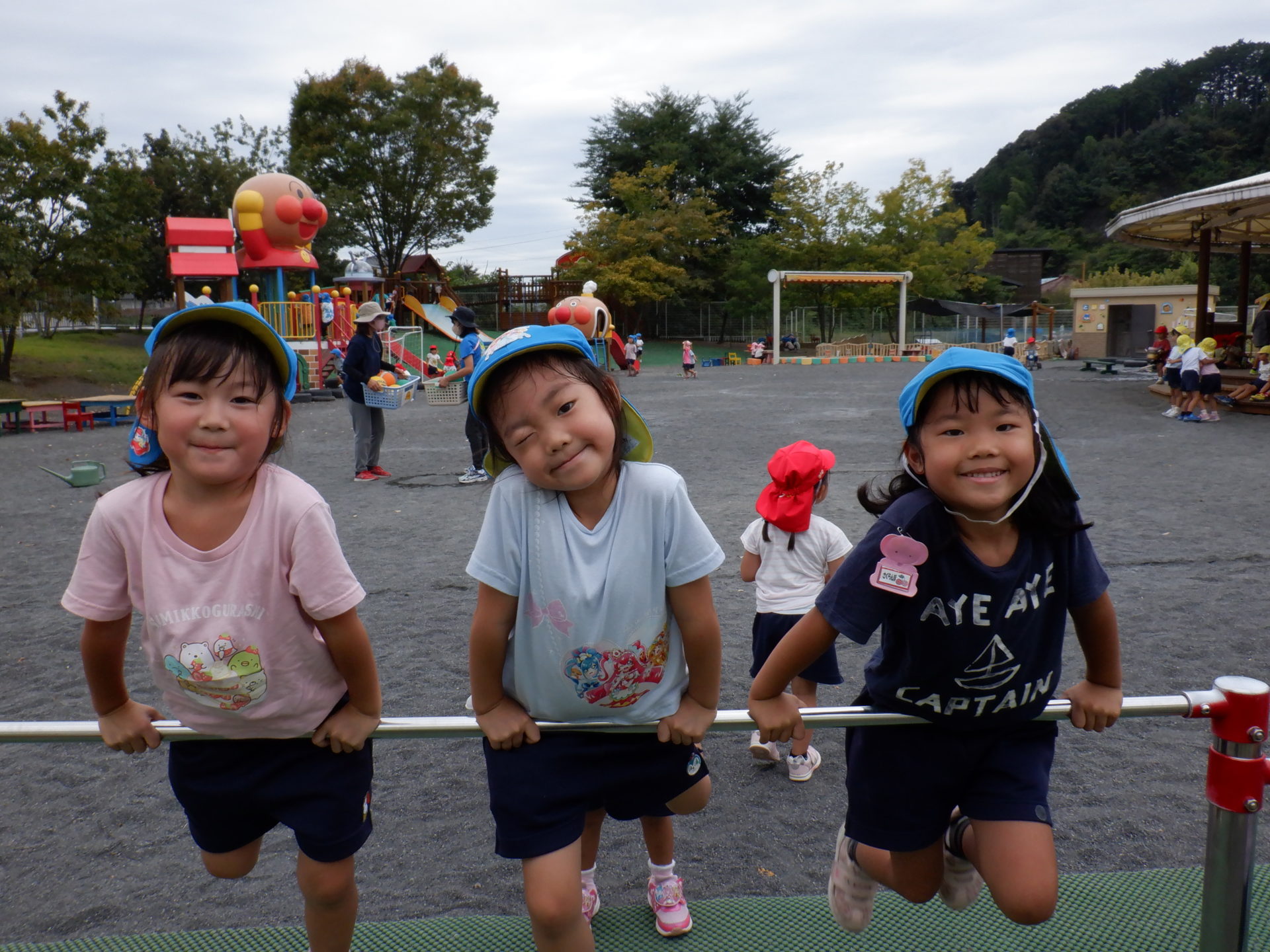9月に入り、園庭には山登り、平均台、鉄棒、跳び箱が設定されました。昨年運動会を経験した青組の子どもたちは、設定されている障害物にどんどんチャレンジしていきます。初めは「苦手~」と言っていた子も、何度も挑戦していくうちに「できた!!」と目を輝かせます。かけっこでは”よーいのポーズ”をかっこよく決めて元気いっぱいに走り出します。運動会まであと少し、みんなで一緒にがんばろうね!!