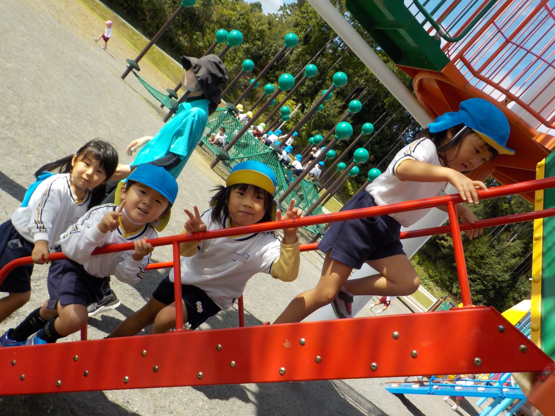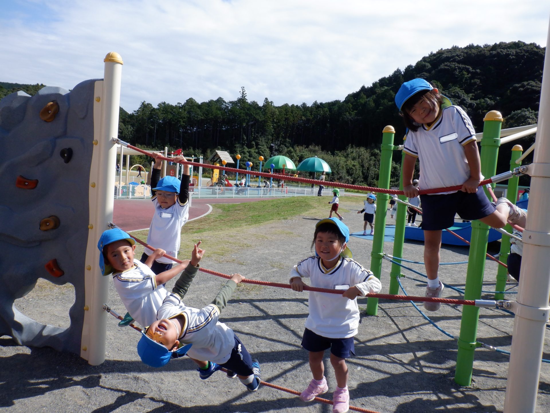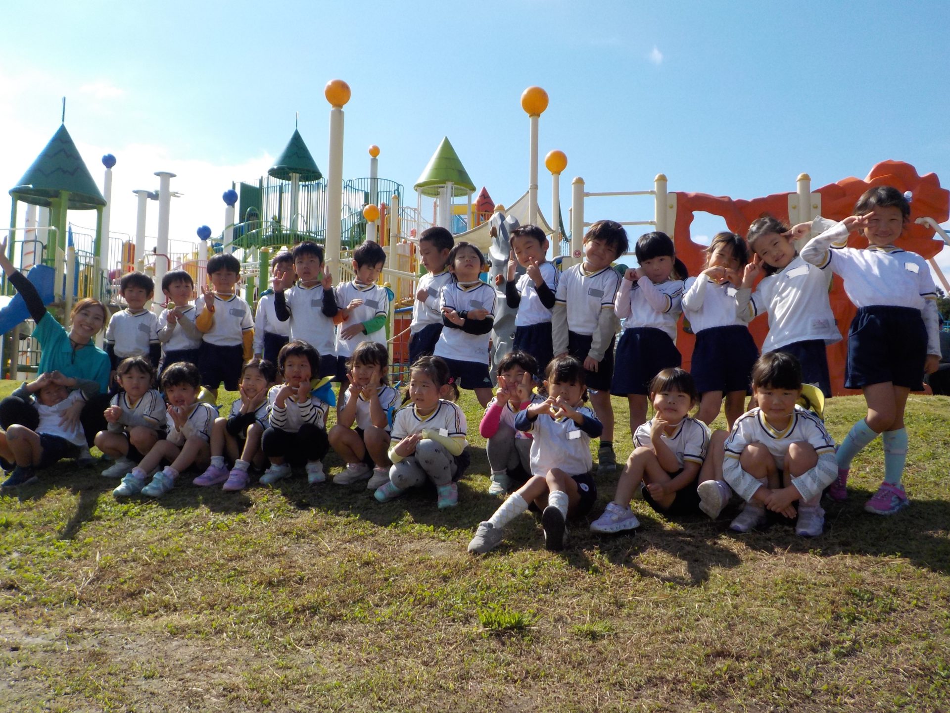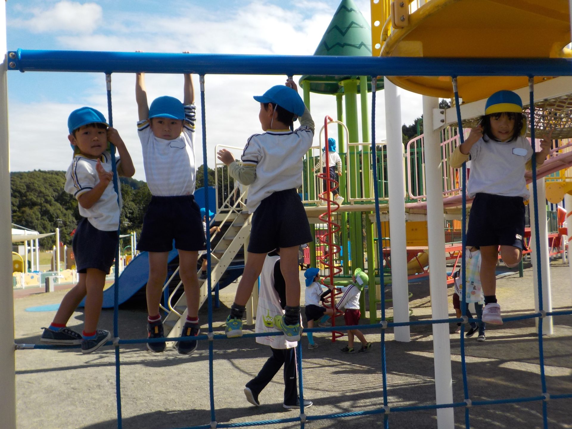 風がだんだん秋の涼しさに変わり、遠足日和の10月18日(火)にゆめみらいパークへ行ってきました!「お家の人と行ったことあるよ!」「この道、通ったね!」「この前も行ったね!」とバスの中では道案内をしてくれた子どもたち。公園に着くと、まずはお約束を聞き、好きな遊具へ一目散!!ガラガラすべり台や、くるくる回るすべり台、園とは違う遊具で沢山身体を動かしました☆
