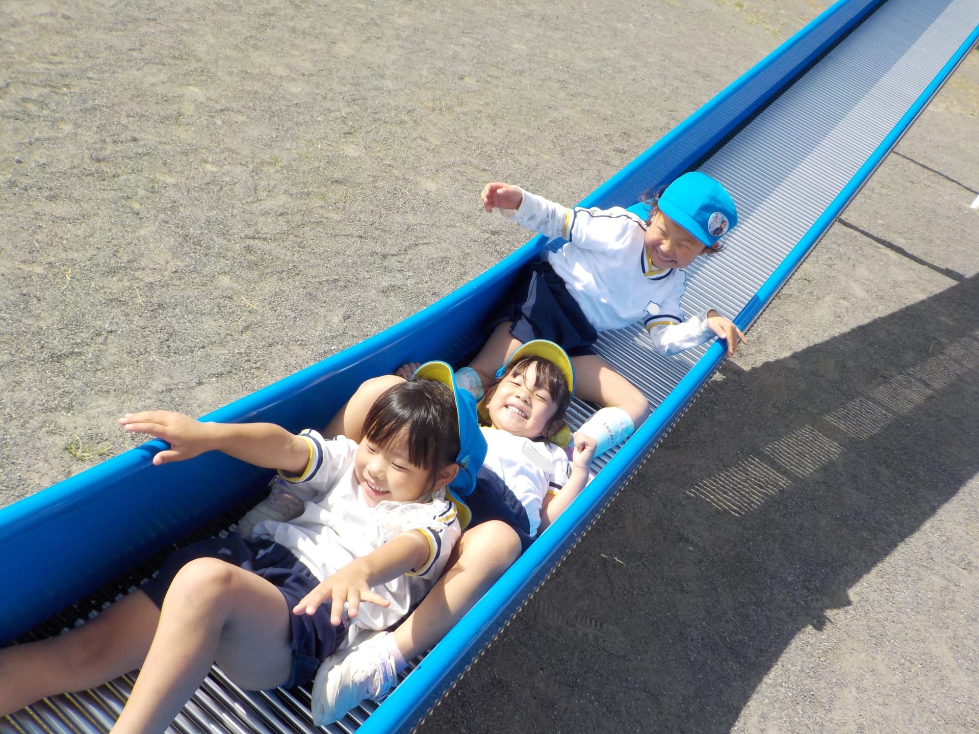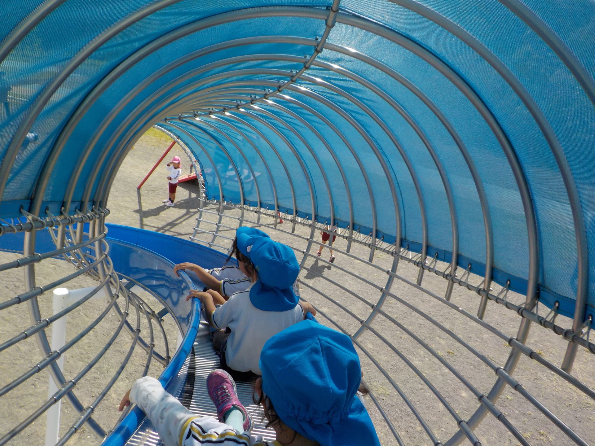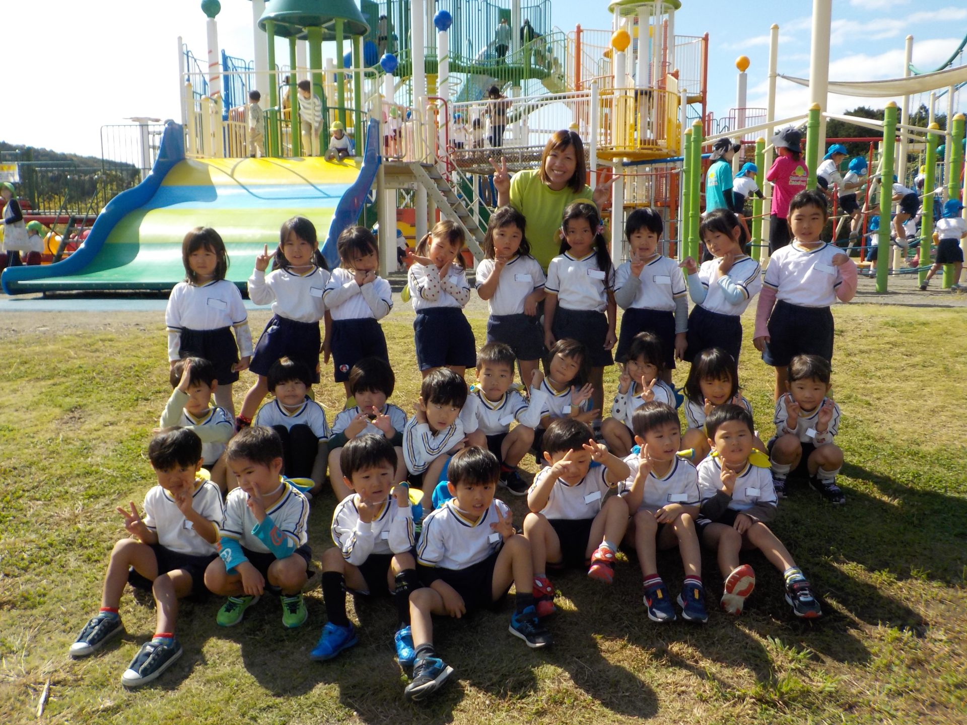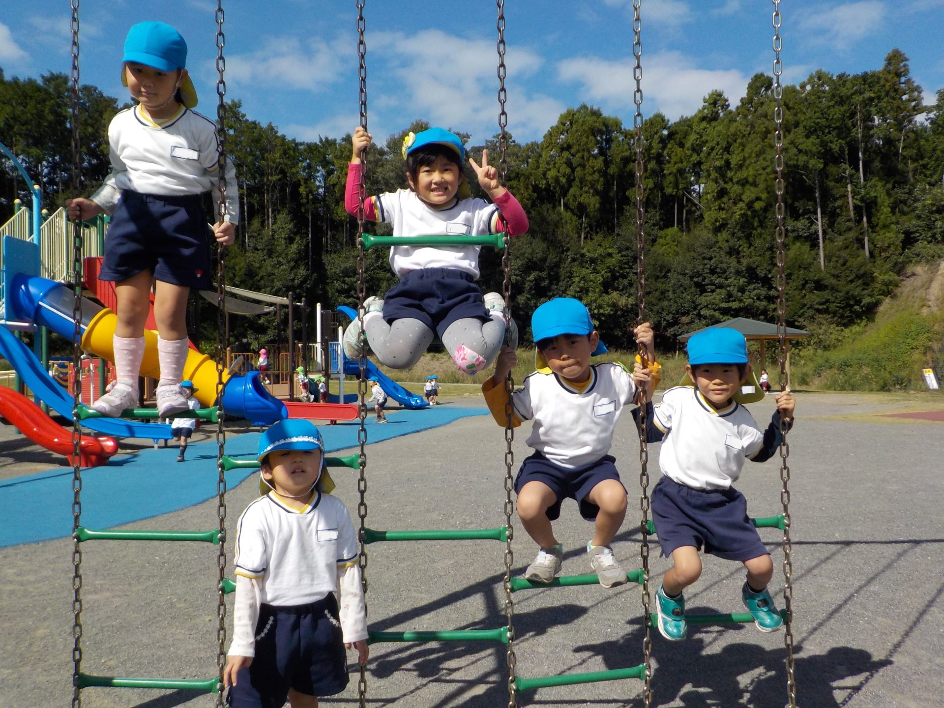 風がだんだん秋の涼しさに変わり、遠足日和の10月18日(火)にゆめみらいパークへ行ってきました!「お家の人と行ったことあるよ!」「この道、通ったね!」「この前も行ったね!」とバスの中では道案内をしてくれた子どもたち。公園に着くと、まずはお約束を聞き、好きな遊具へ一目散!!ガラガラすべり台や、くるくる回るすべり台、園とは違う遊具で沢山身体を動かしました☆