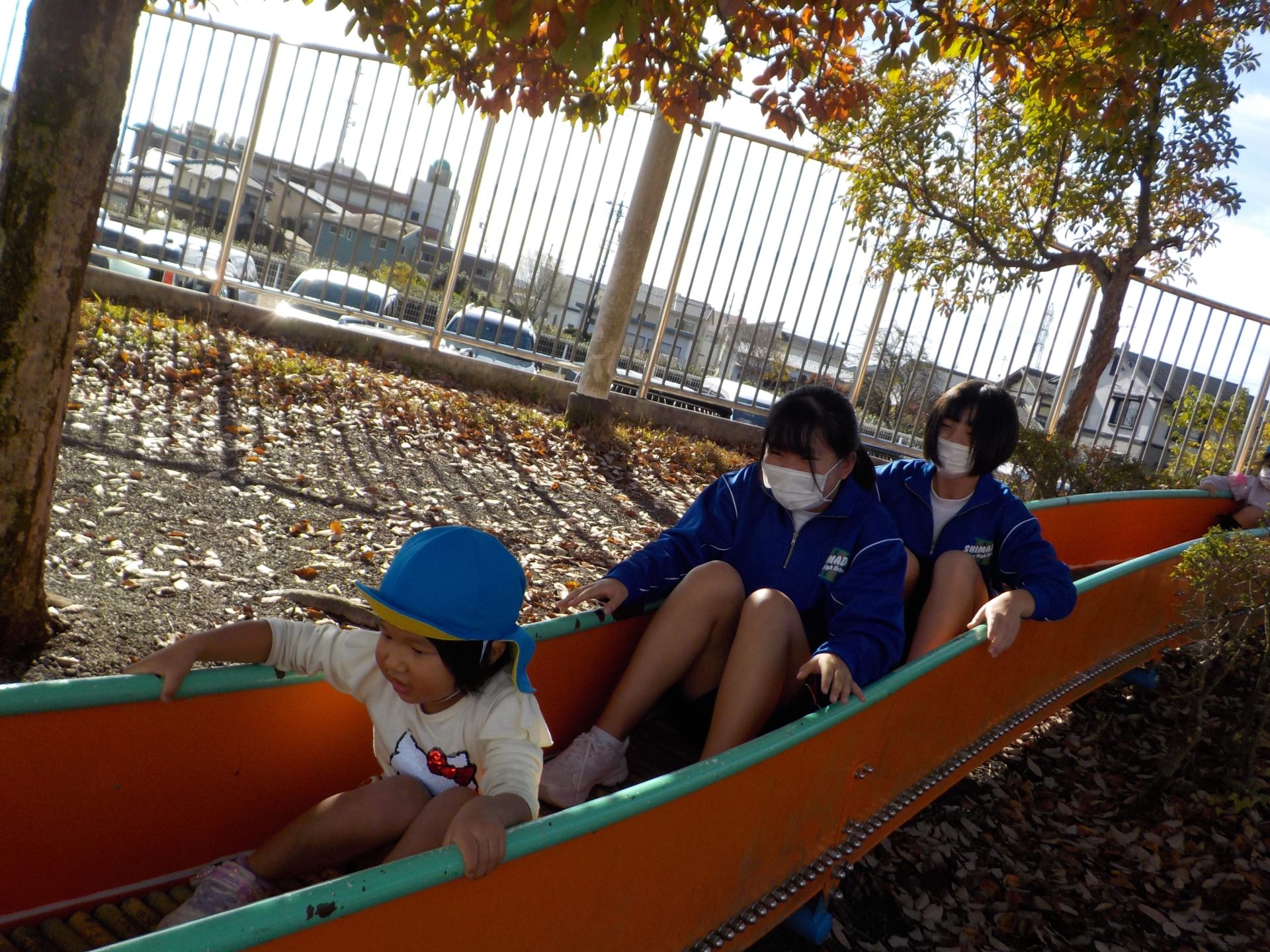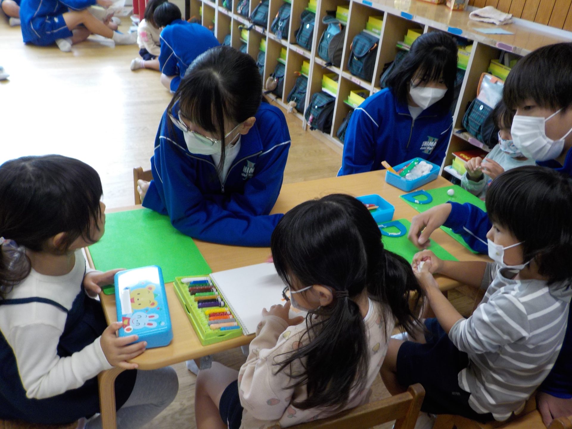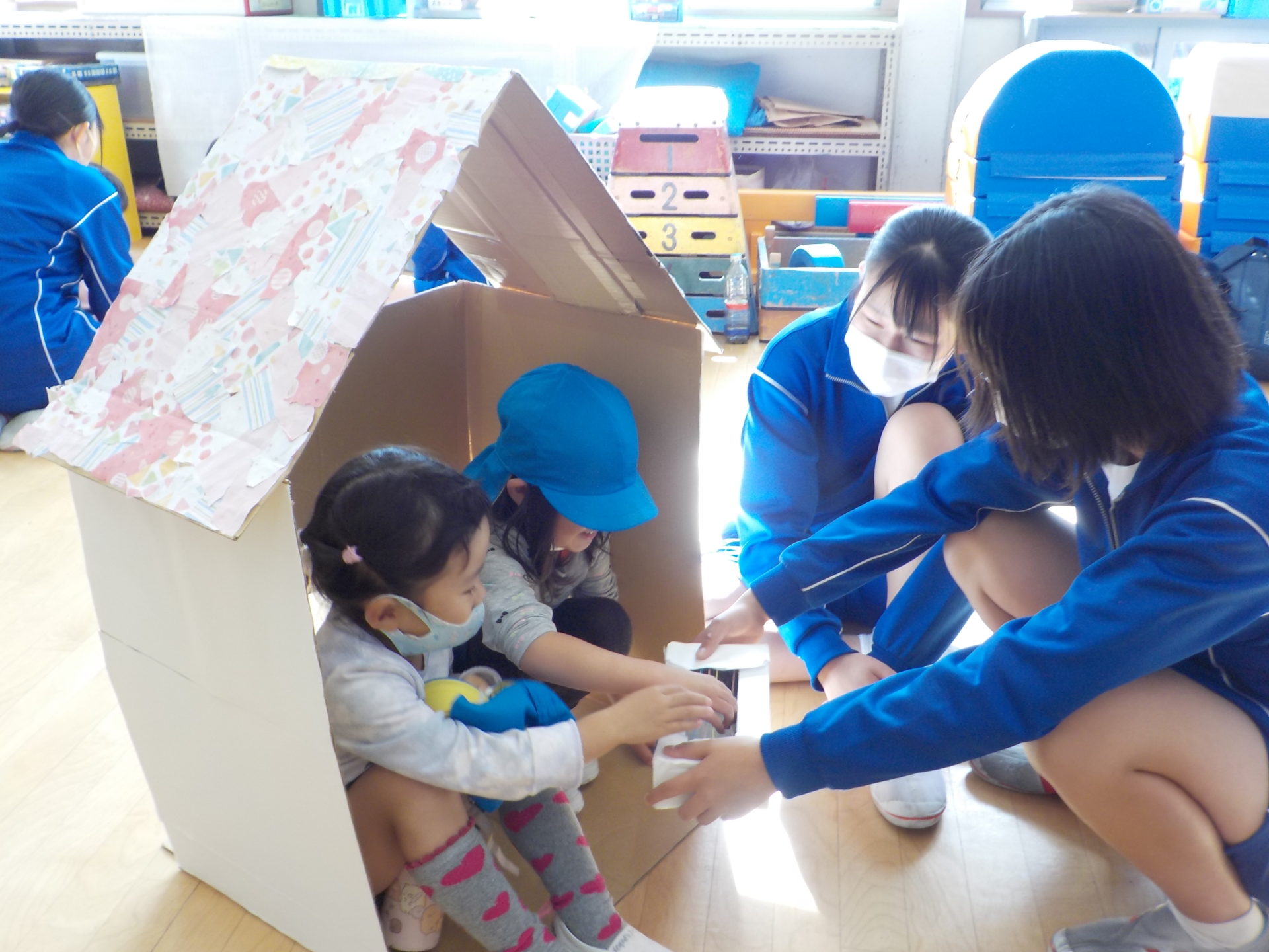 島田第二中学校のお兄さんお姉さんが、ふれあい学習として、こども園に遊びに来てくれました!普段の園生活では関わることのないお兄さんお姉さんに、大興奮の子どもたち!クラスごと活動の日が違っていたこともあり、「僕たちのお部屋にはいつくるの?」「今日は来ないの?」とその日を楽しみに待っていました。いざ交流がスタートすると、始めましてのお兄さんお姉さん、に少し緊張した表情を見せる子もいれば、この遊びしよう!と積極的に遊びを広げていく子もいました。1時間という限られた時間でしたが、遊具で遊んだり、お部屋で絵本を読んでもらったりとても楽しい時間になりました☆