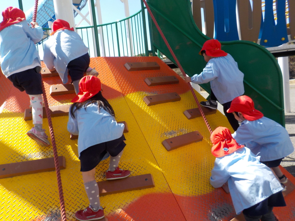 赤組最後の園外保育では、ゆめ未来パークに行ってきました!子どもたちは、遊具に一目散に走っていきました。長いすべり台やスピードの出るすべり台など、たくさんのすべり台を何度も滑って楽しみました。くもの巣ネットでジャンプして遊んだり、遊具の上... -