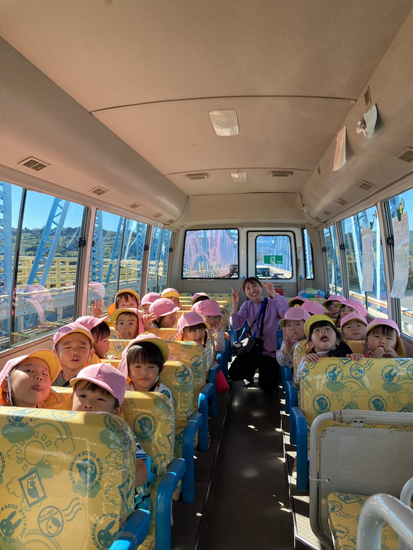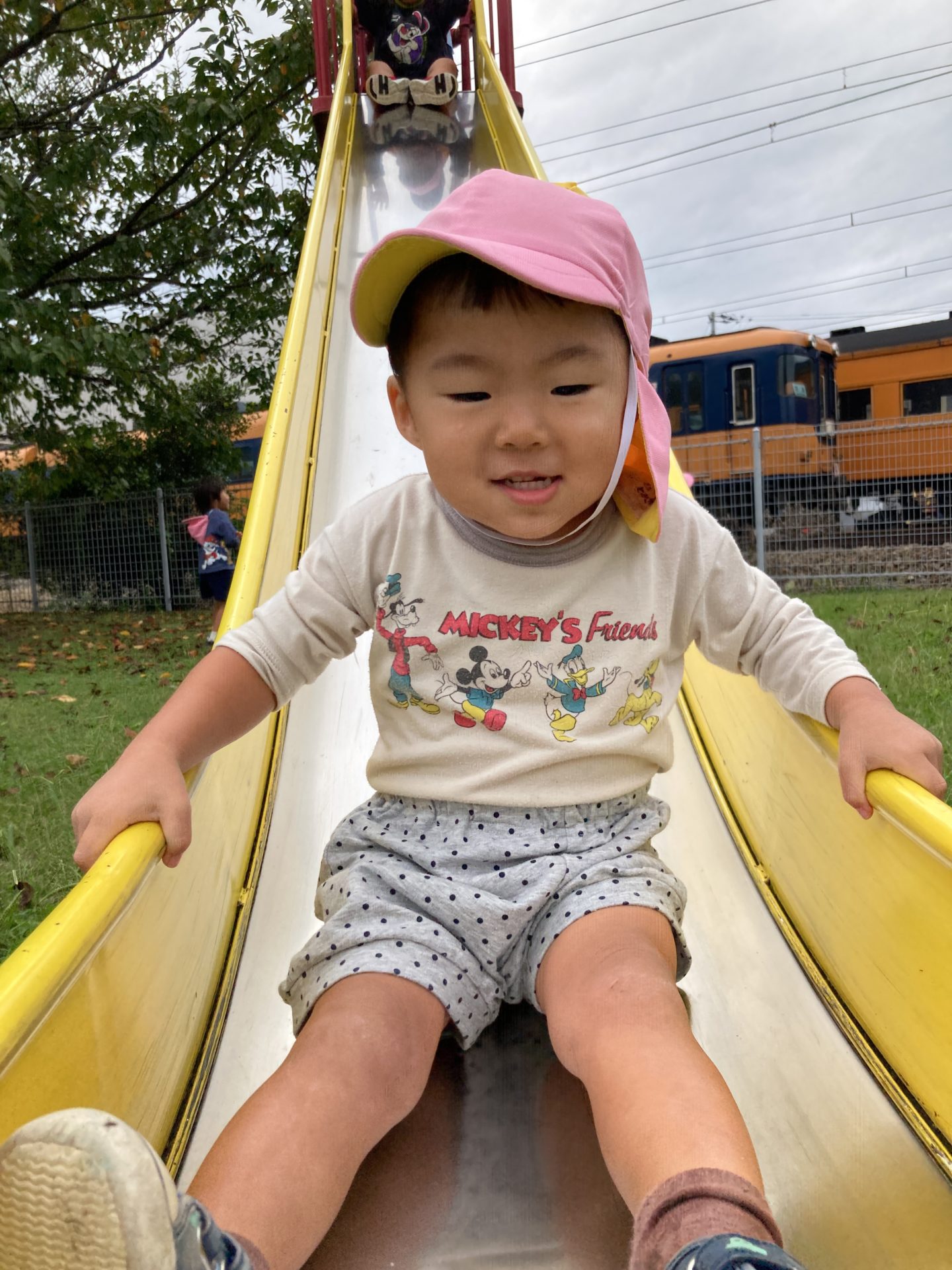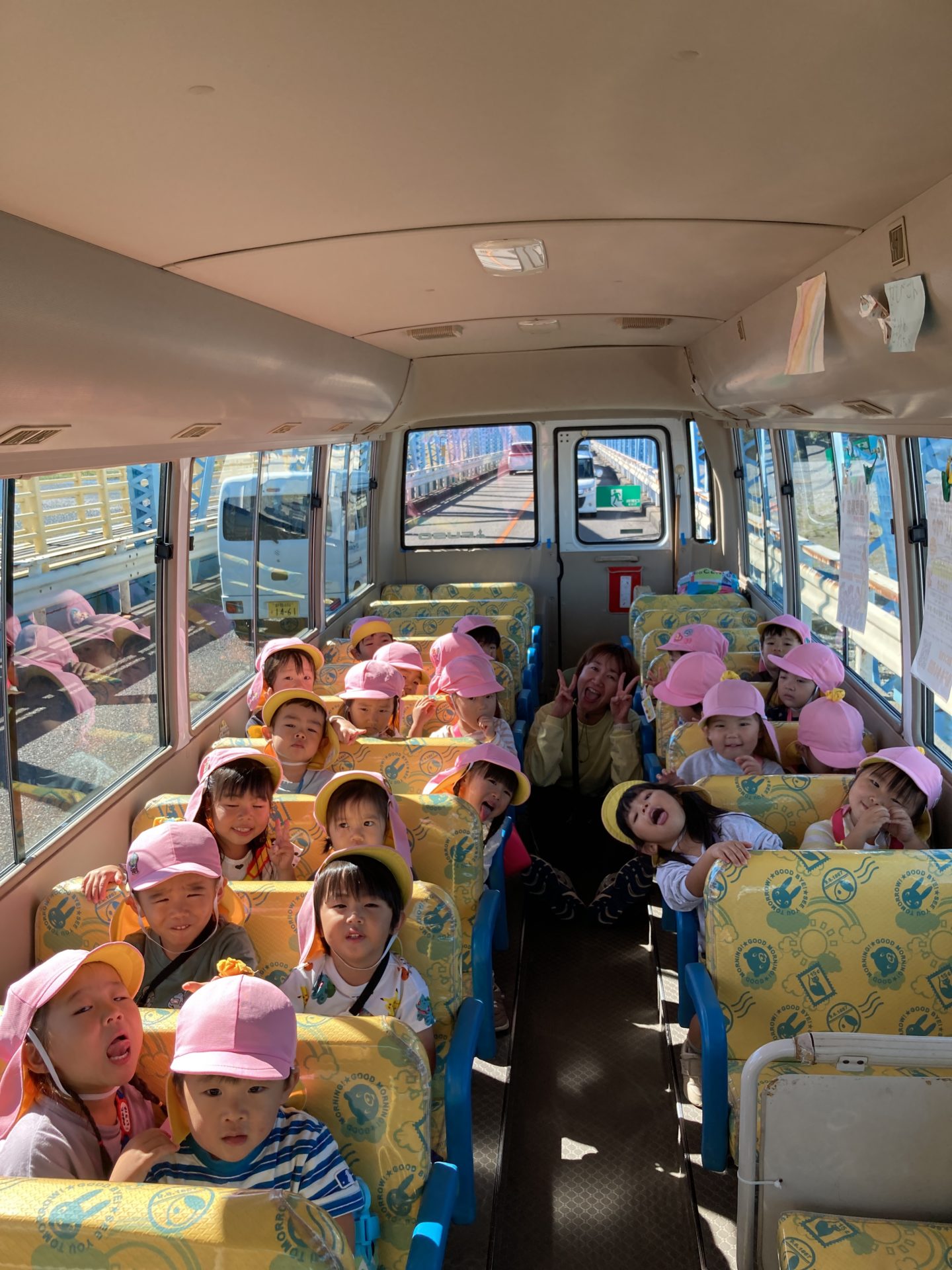 秋風が気持ちの良い日に、待ちに待った遠足に行ってきました! 2歳児の子どもたちにとって遠足は初めてのことで、出かける前から「もうすぐ遠足だね!」「バスに乗るんでしょ~!」と目をキラキラ輝かせていました。待ちに待った遠足の日は、バスチケットを手に持ち、お友だちと楽しそうにお話しをしながらバスに乗りました。公園に着くと全身を使って遊具での遊びを楽しみました☆