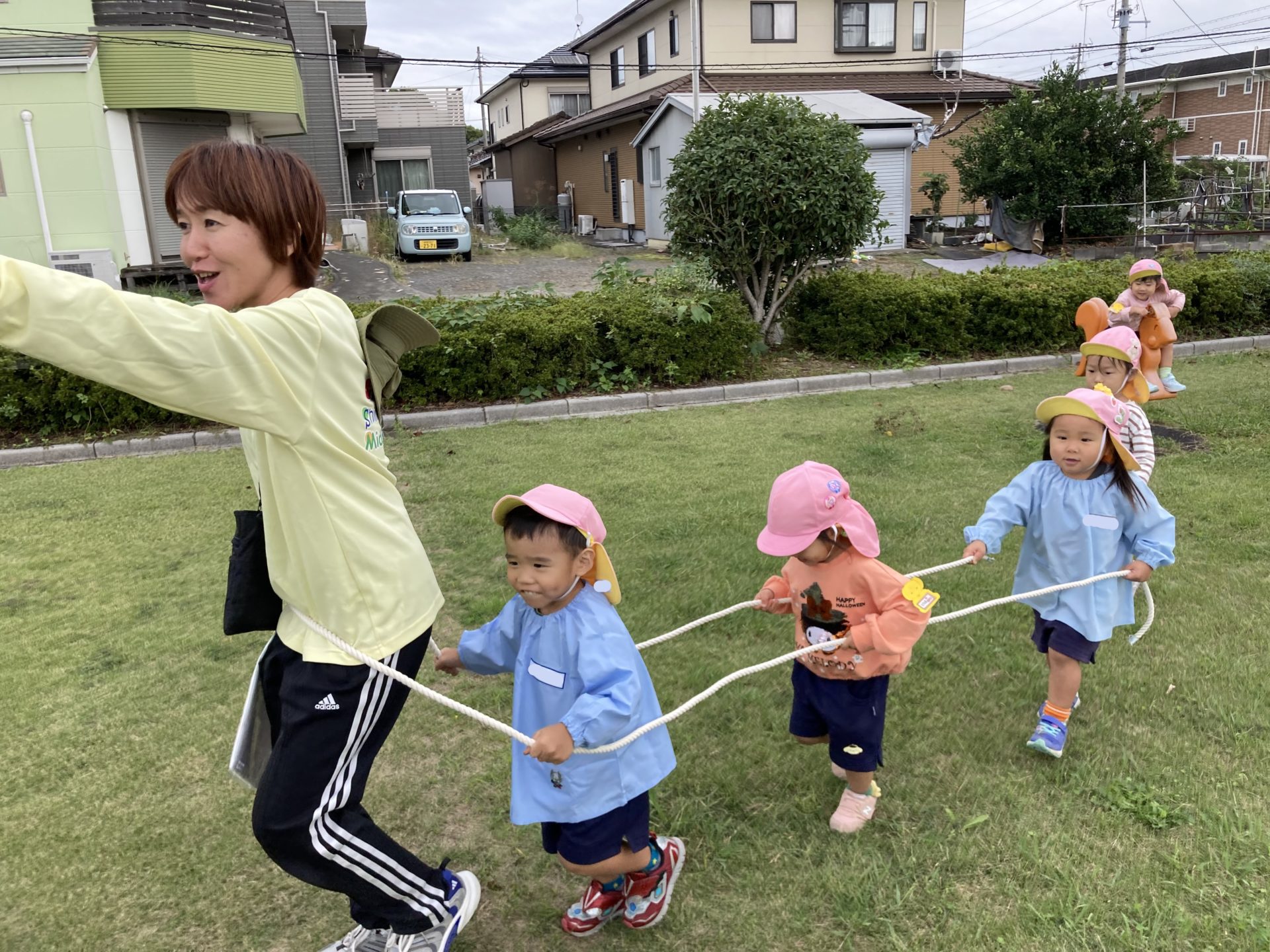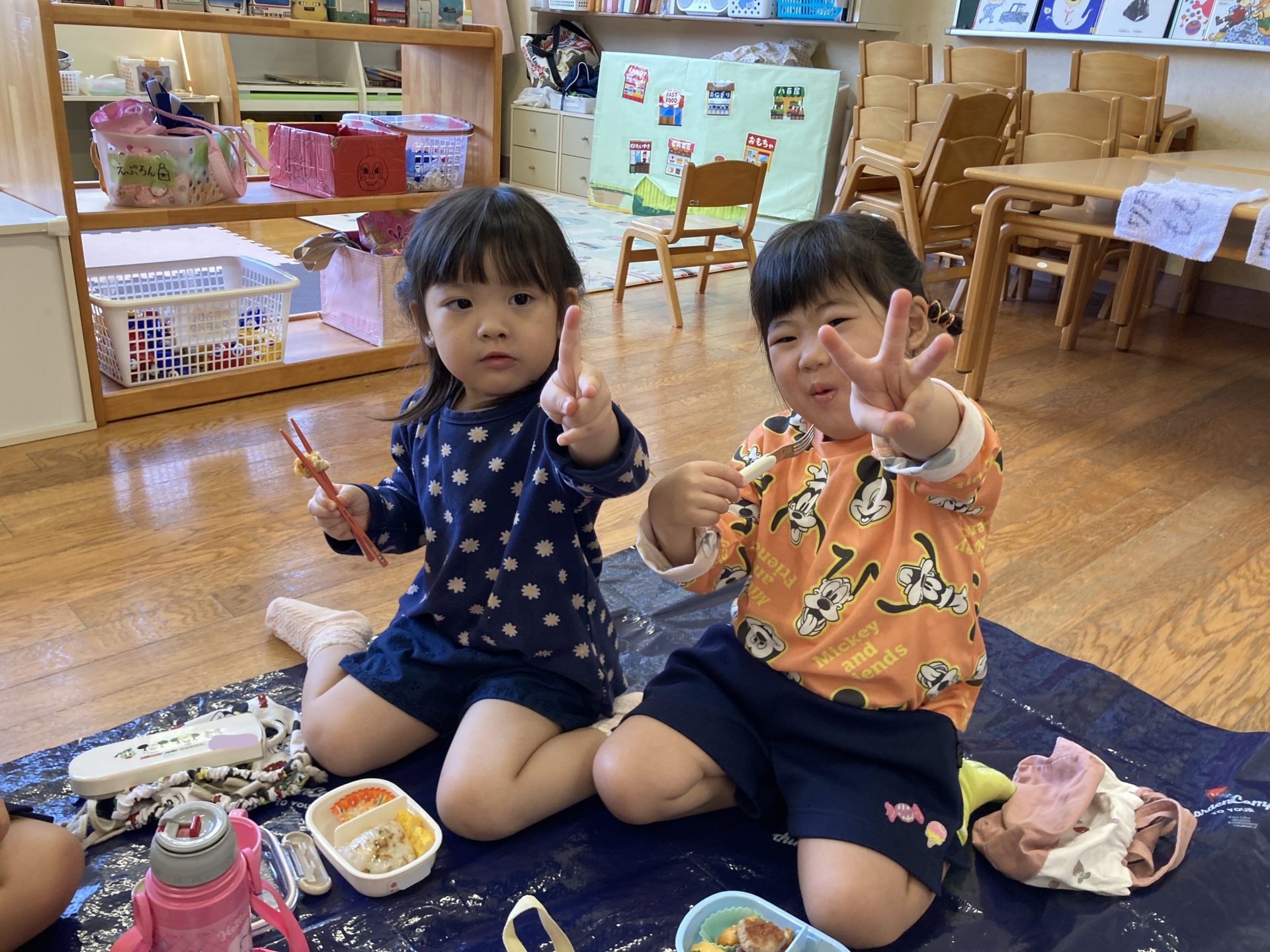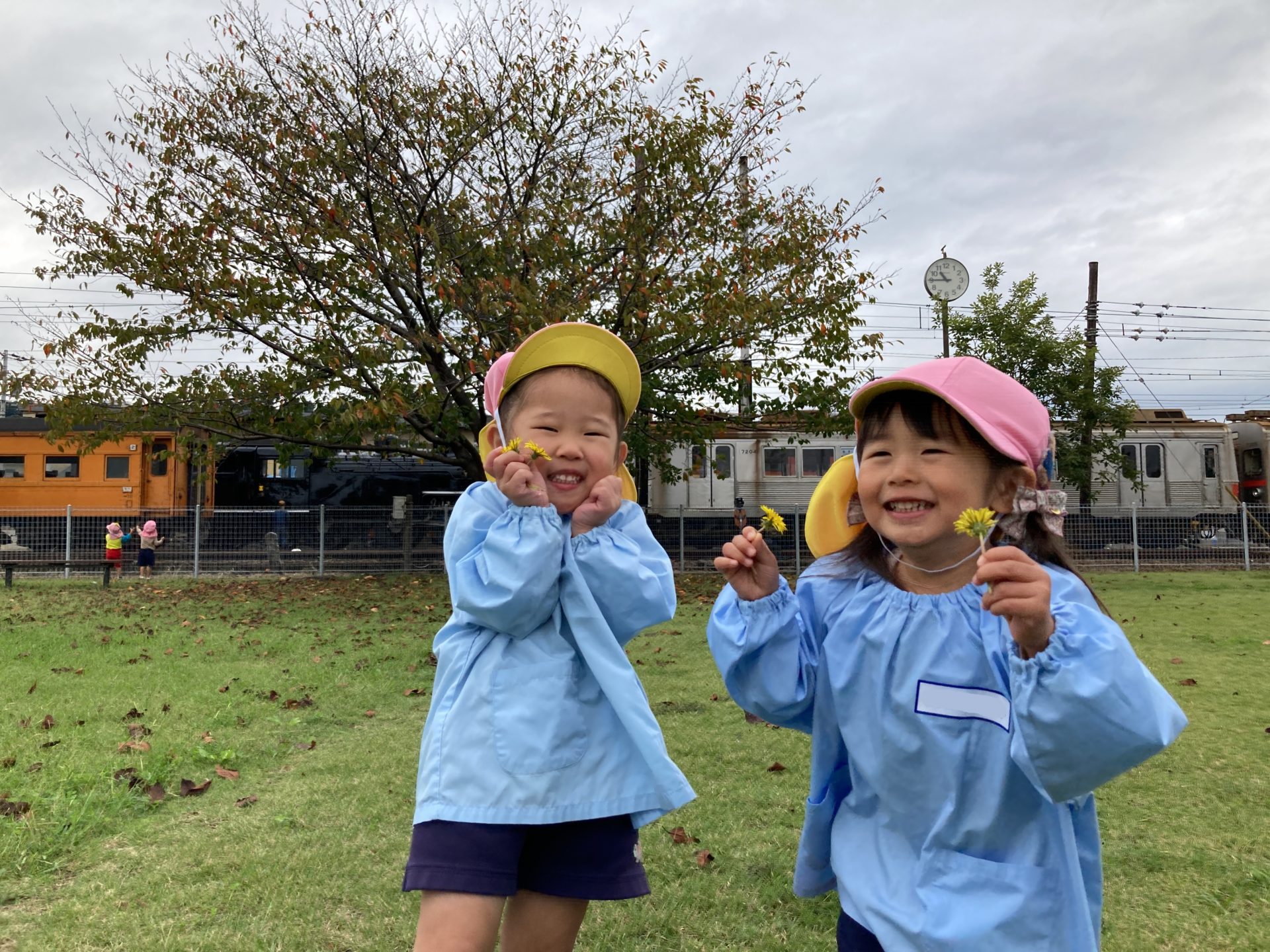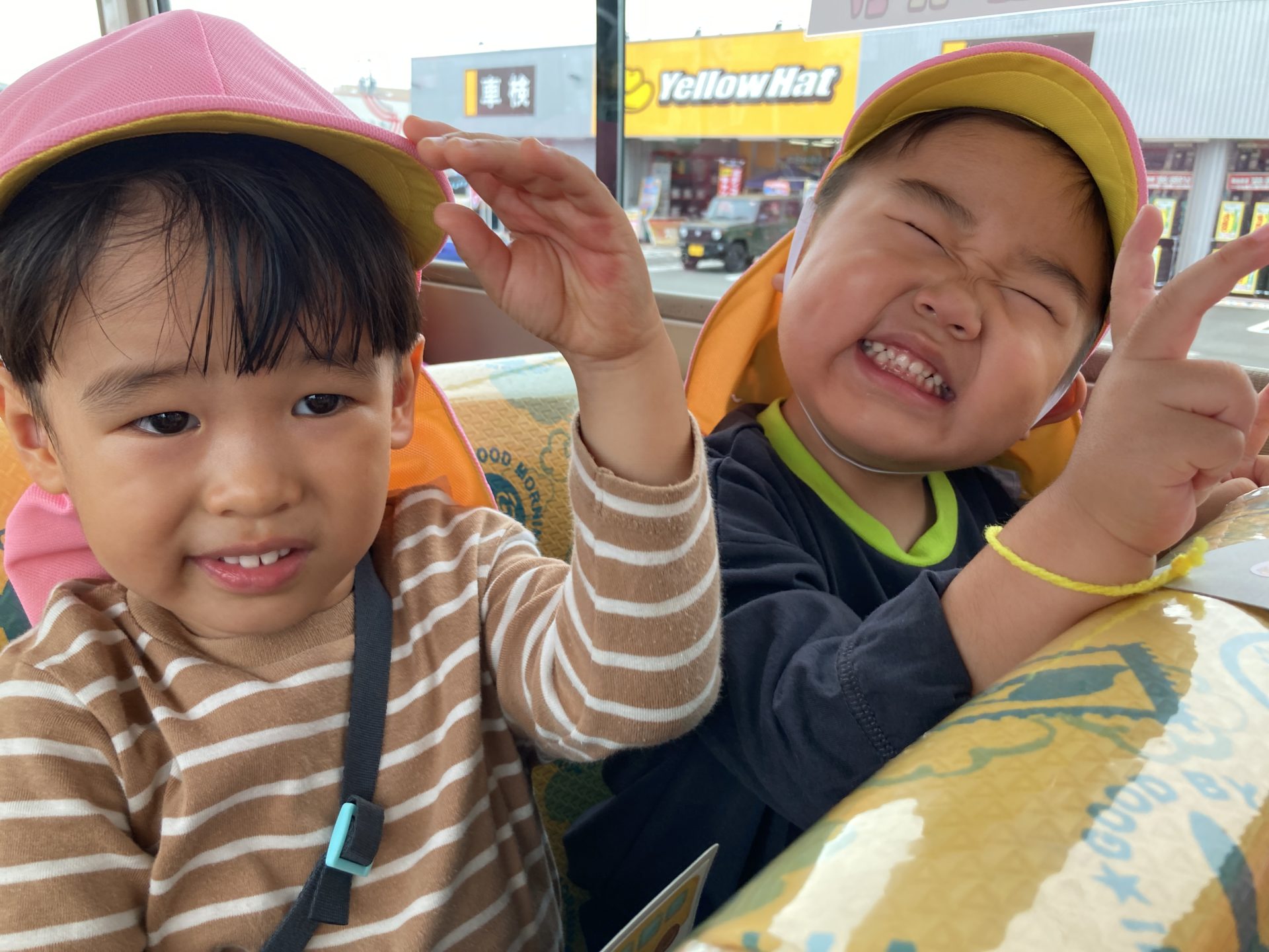 秋風が気持ちの良い日に、待ちに待った遠足に行ってきました! 2歳児の子どもたちにとって遠足は初めてのことで、出かける前から「もうすぐ遠足だね!」「バスに乗るんでしょ~!」と目をキラキラ輝かせていました。待ちに待った遠足の日は、バスチケットを手に持ち、お友だちと楽しそうにお話しをしながらバスに乗りました。公園に着くと全身を使って遊具での遊びを楽しみました☆