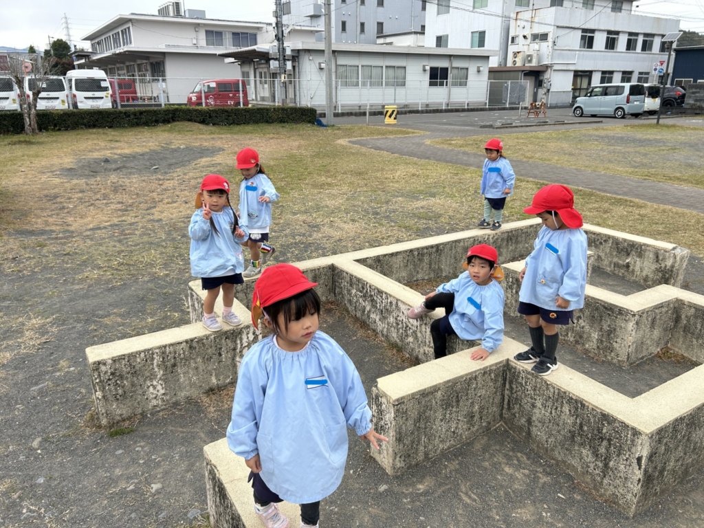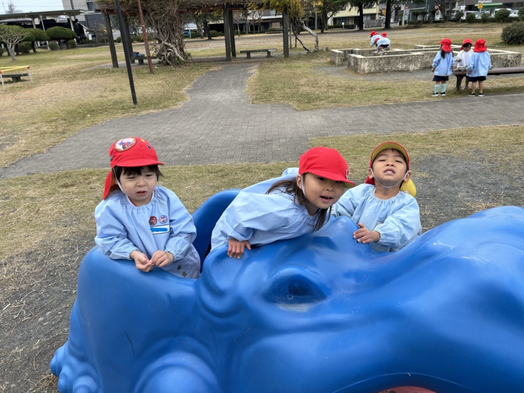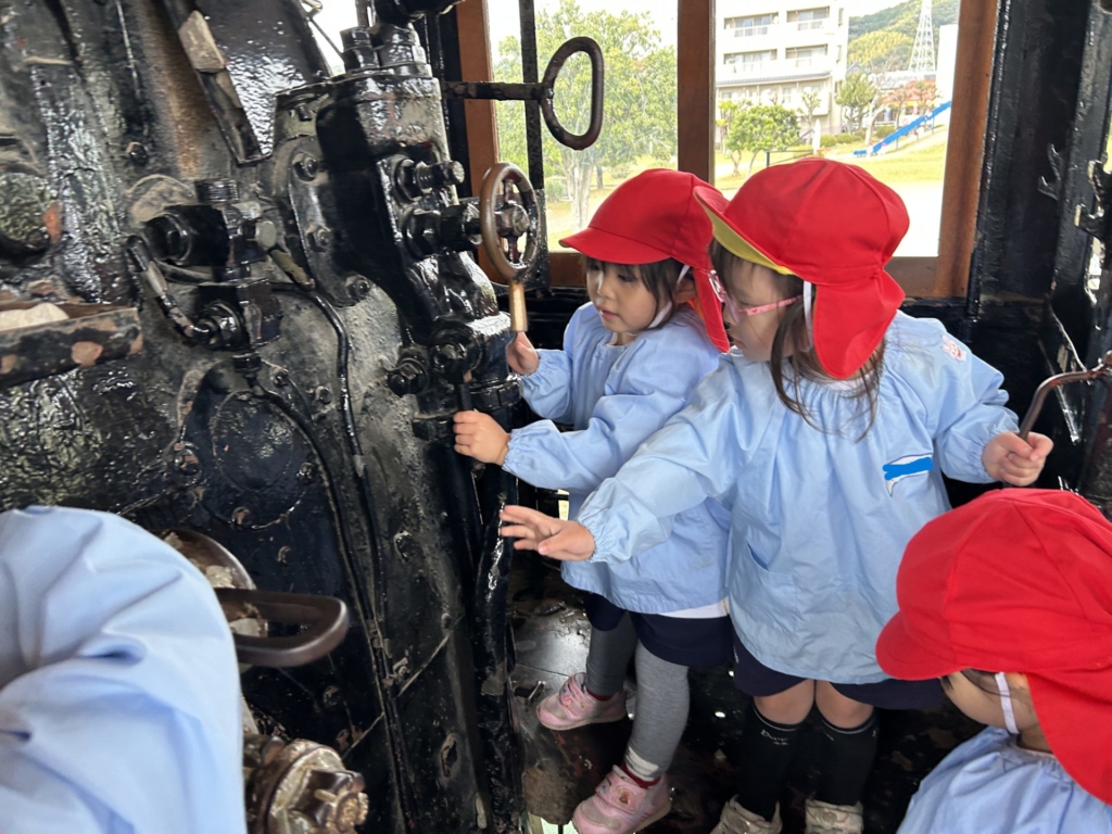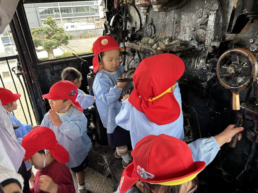 中央小公園に行ったよ!(赤組) 2025 12/09 お知らせブログ 2025.12.09 秋の遠足で中央小公園に行ってきました!前日から楽しみにしていた子どもたちは公園に着くと、「はやくブランコしたいな!」「SLかっこいいね」とウキウキした様子でした♡SLに乗ると運転手になりきって遊んだり、みんなで一緒にすべり台を滑ったりして思いきり楽しみました♪ お知らせブログ 警察署へ見学に行ってきたよ!(黄組)