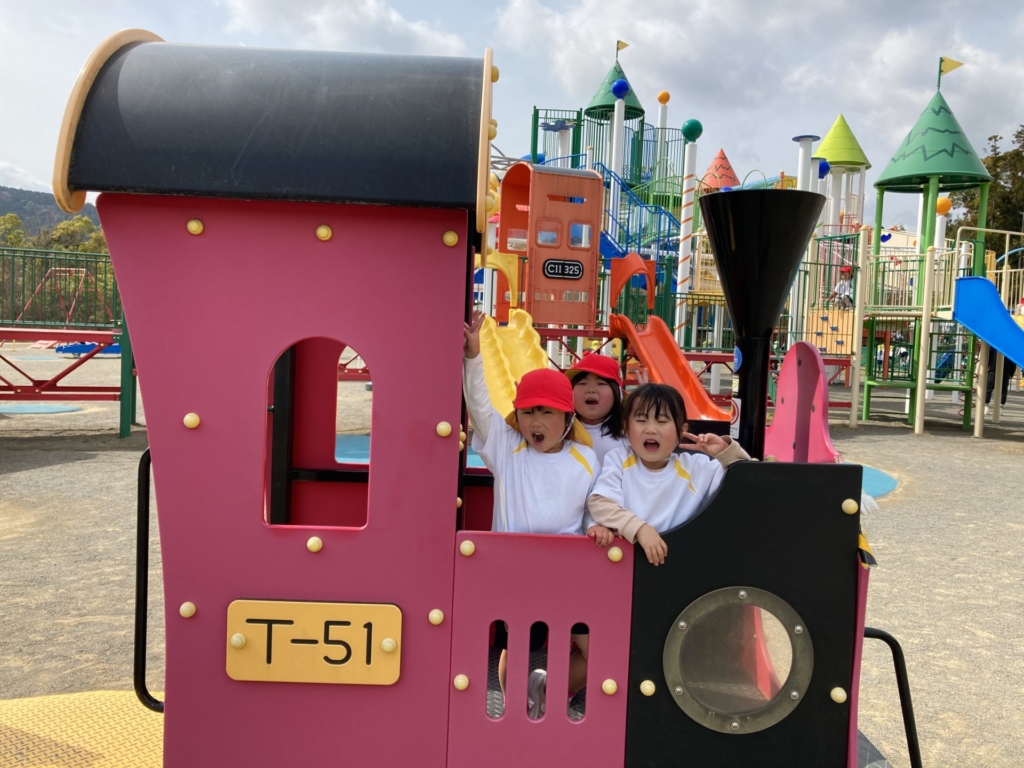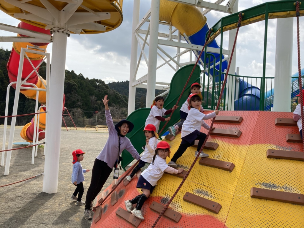 最後の遠足はゆめみらいパークへ行きました。大きな遊具に大喜びの子どもたち。大好きなお友だちや先生とすべり台を滑ったり、広場を思いっきり走ったりするなど存分に体を動かしてとっても楽しい時間を過ごしました♪
