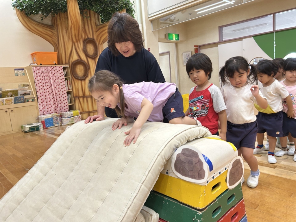 今回のわくわくタイムでは、忍者になりきって様々な修行に挑戦しました♪岩に見立てたマットを飛び越えジャンプをしたり、大きな岩に見立てた高い跳び箱を登ったりするなど、思いっきり身体を動かして楽しみました!最後には忍者にも会えて大喜びしていた子... -